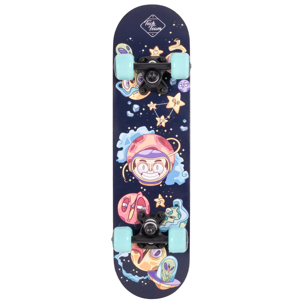 Яркий дизайн делает эту модель неповторимой: нижняя часть деки украшена крутым принтом в голубых тонах с изображением космоса и инопланетян. Это не просто товары для спорта, это - произведение искусства на колесах.