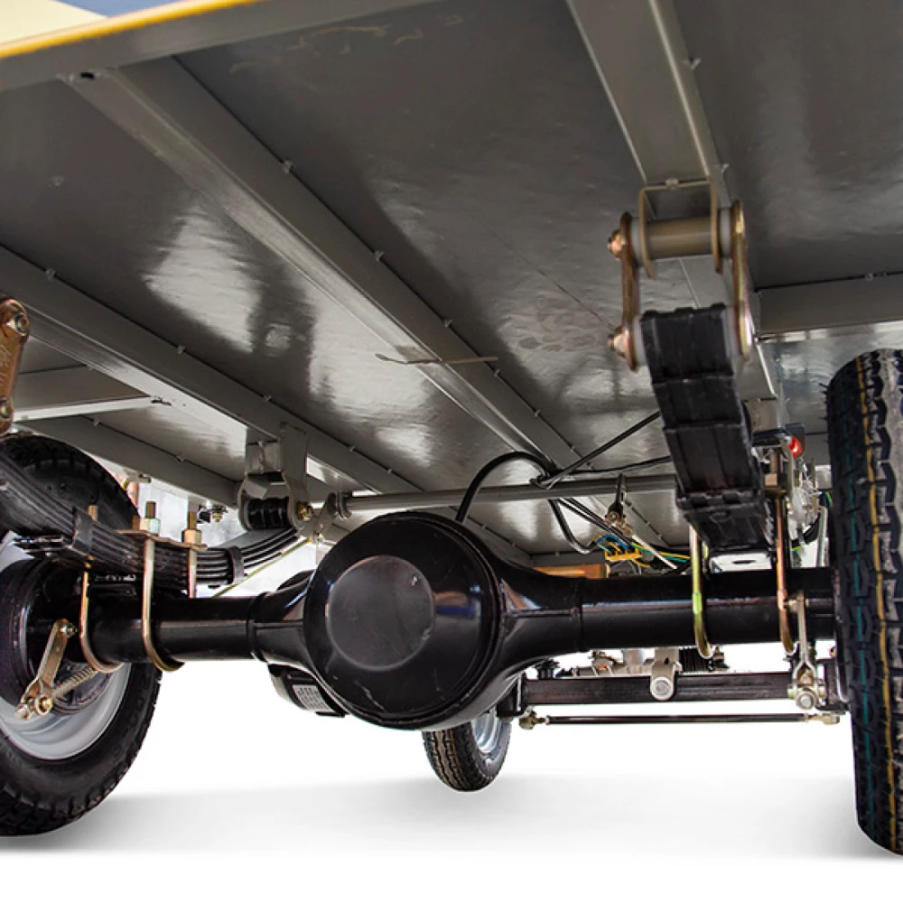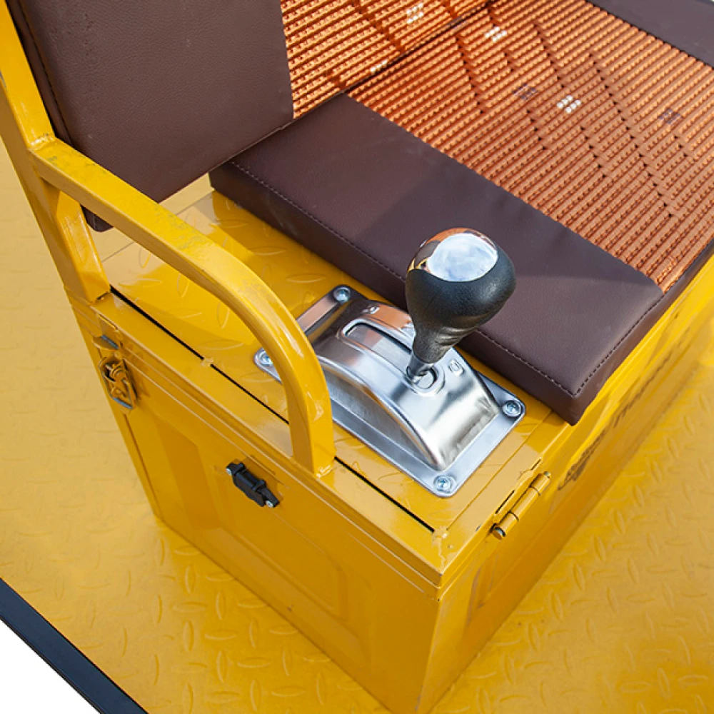 Платформа размерами 2100 x 1000 мм изготовлена к высокопрочной стали, рассчитана на продолжительную эксплуатацию без потери первоначальных характеристик при максимальных нагрузках до 1000 Вт. Электрокар оснащен мощным электродвижком на 1200 Вт способным развит скоростные параметры до 25 км/час. Накатистые колеса отлично сцепляются с поверхностью, способны преодолевать подъемы до 15 градусов.