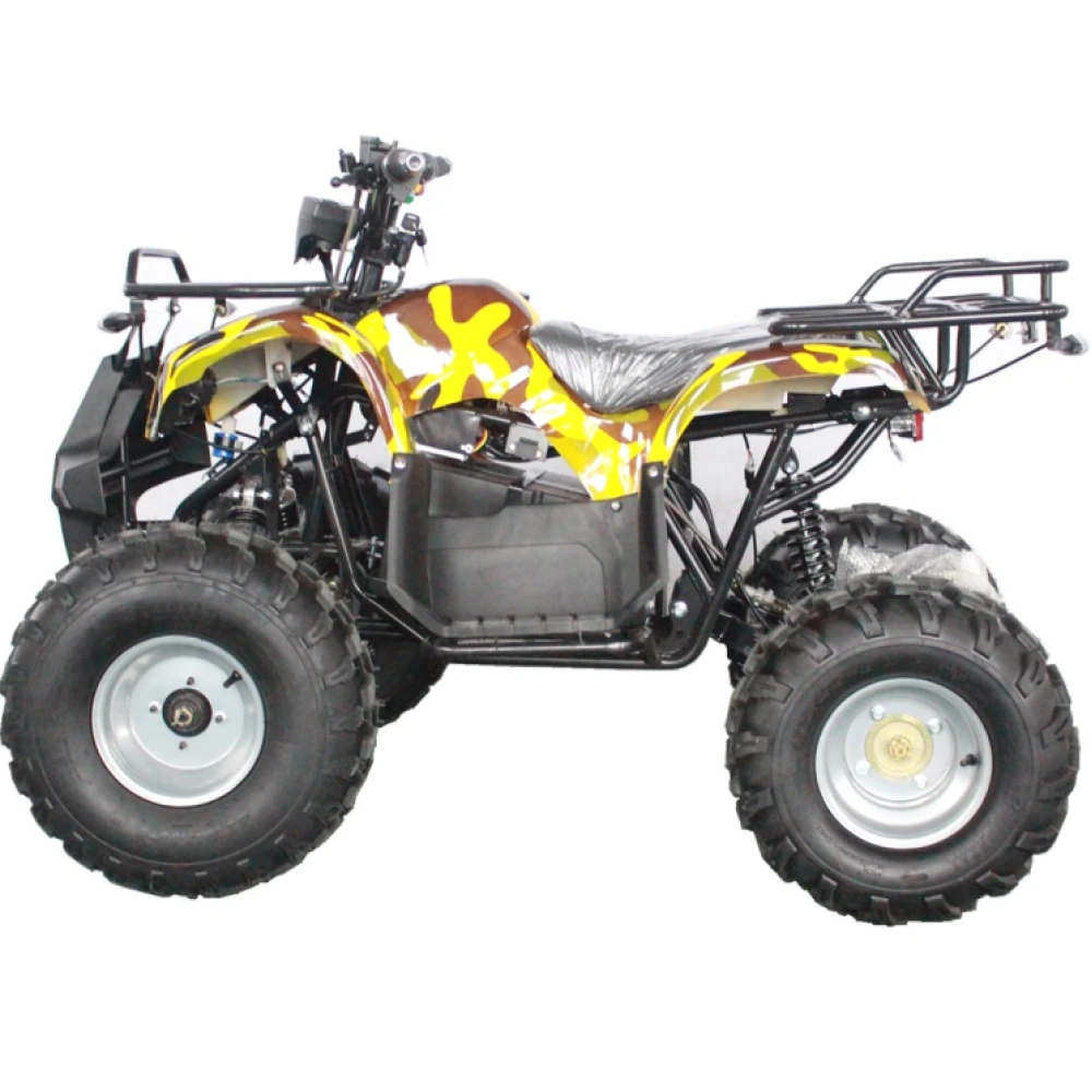 Скорость квадроцикла равняется 40 км/ч – это больше чем у целого ряда электроскутеров. На все четыре колеса установлены надёжные тормоза: барабанные механические спереди и дисковые гидравлические сзади. Также у GreenCamel Atakama T400 имеется: фаркоп, сигнализация, спидометр с LED-подсветкой, а багажники есть и спереди и сзади.