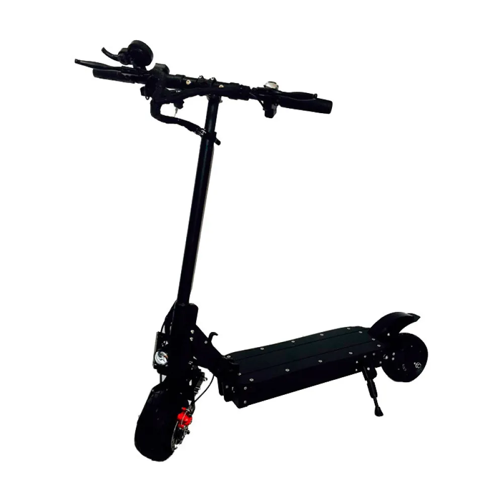 Электросамокат CurruS G8 впечатляет своими техническими показателями. Оснащенный двумя моторами общей мощностью 1000 Вт, самокат легко разгоняется до 50 км/час, что сравнимо со средней скоростью легкового автомобиля. Переключатели на руле позволяют использовать полный привод, либо отключать один из моторов, когда в нем нет необходимости. При движении на высокой скорости важна уверенность в тормозной системе транспортного средства. В данной модели производители предусмотрели дисковый и электрический тормоз, гарантирующие быструю остановку в экстренной ситуации. Безопасность движения в темное время суток обеспечивает система освещения, которая включает передние и задние габаритные огни и яркую переднюю фару. Широкие колеса из мягкой литой резины и амортизаторы позволяют комфортно передвигаться не только по гладкому асфальту, но и в более экстремальных условиях. На руле расположен электронный дисплей, благодаря которому райдер может контролировать скорость, выбранный режим движения и уровень заряда батареи. О последнем показателе не придется часто беспокоиться, ведь полного заряда аккумулятора хватает на 60 километров пути. Совокупность перечисленных характеристик позволяет назвать электросамокат CurruS G8 оптимальным транспортным средством для поездок по городу и загородных прогулок.