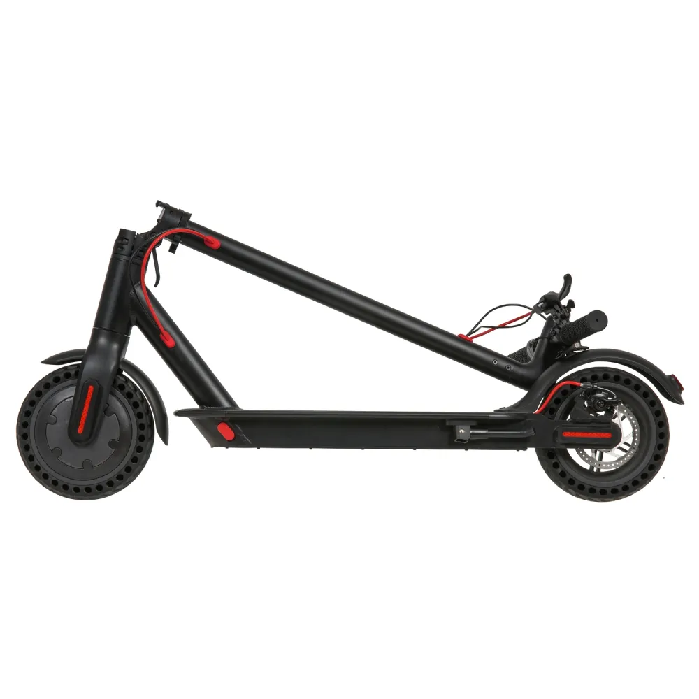 Если аккумулятор разрядится или сломается во время поездки, электросамокат легко складывается и его можно будет легко транспортировать на общественном транспорте или автомобиле.