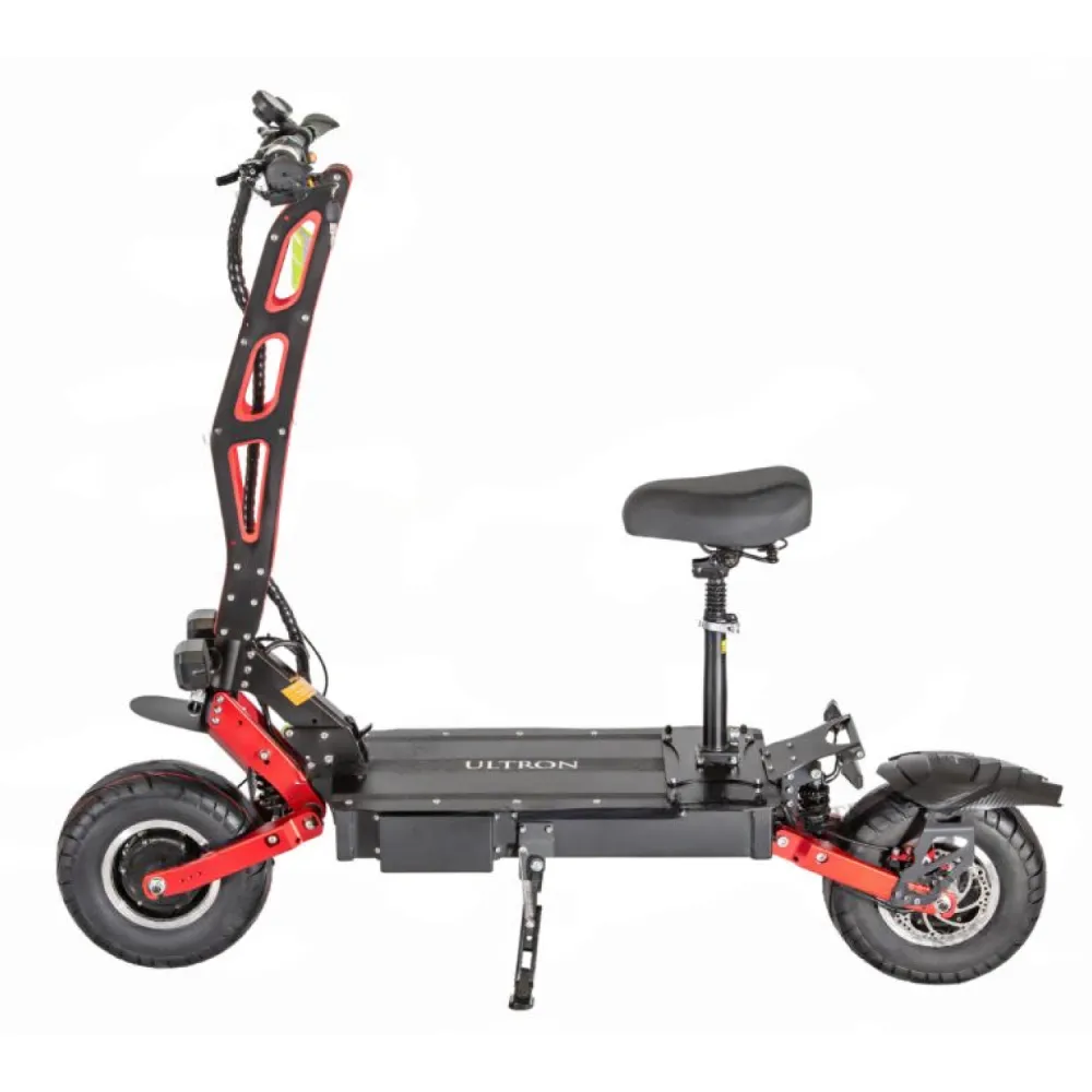Электросамокат Ultron T128 PLUS – привлекает посторонние взгляды брутальным агрессивным дизайном. Мимо такого элестросамокат не сможет пройти ни один мужчина. Модель покорила райдеров техническими характеристиками, безотказностью комплектующих, оригинальной совершенствованной начинкой. Купить электросамокат сейчас, по приемлемой стоимости, предлагает наш интернет-магазин.