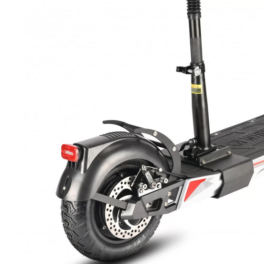 Электродвигатель мощностью 1000 Вт свободно разгоняется до максимальных показателей 45 км/час. Литий-ионный аккумулятор (емкостью 16000 мАч) надежно защищен от механических повреждений. Полного заряда АКБ (8 часов) хватит на прохождение 50 км пути. Амортизационные пружины хорошо смягчают дорожные неровности и дарят полное ощущение комфорта. Складная конструкция и удобное сидение делают его особенно популярным среди райдеров. Резиновые надувные колеса (11 дюймов) рассчитаны на эксплуатацию в городской местности и парковых зонах. Широкая дека 22*47 см позволит пользователю комфортно располагаться при поездках. Дисковая механическая тормозная система предусмотрена отдельно на каждом колесе дарит райдеру полное ощущение безопасности. Для большего удобства поездок на руле расположен переключатель скоростей.