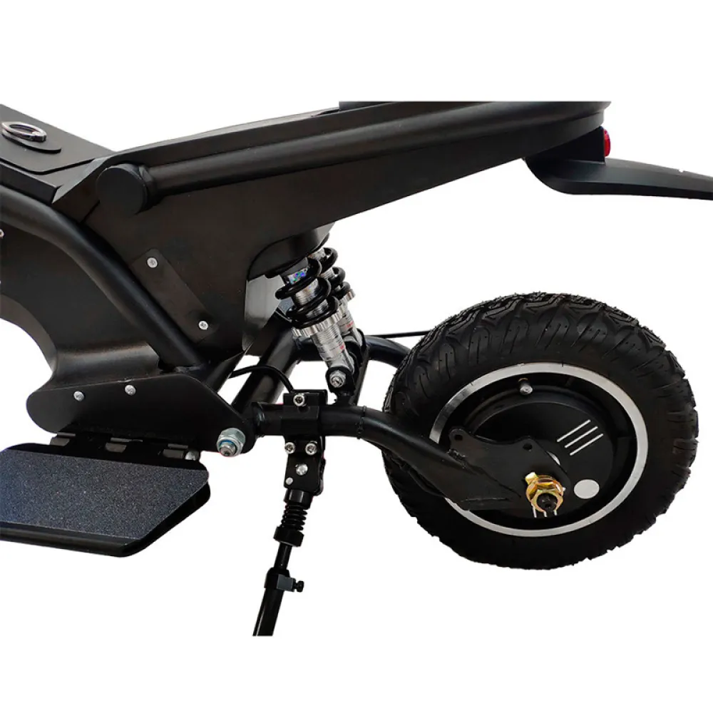 Электросамокат оснащен удобным мягким сиденьем – создается ощущение, будто вы за рулем велосипеда, только теперь не потребуется крутить педали – за счет сиденья платформа была приподнята, а для ног предусмотрены специальные подножки. Также, в отличие от велосипеда, электросамокат значительно меньше по габаритам и весу – его масса составляет 17,8 кг. Максимально допустимая нагрузка на модель составляет 120 кг.