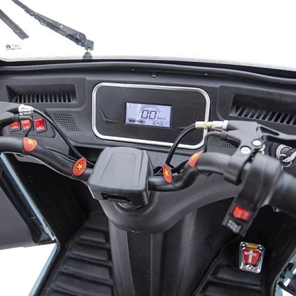 Техника комфортная и удобная для передвижения. Основными элементами комфорта являются: светодиодная фара, открывающиеся стеклоподъемники, вентиляция, наличие противотуманных фар, ручного стояночного тормоза. Технически трицикл оснащен как современная машина. Компактные эргономические характеристики без труда найдут место в гараже. На сегодняшний день модель считается лучшей в качестве презента на торжественное мероприятие. Связаться с интернет-магазином для оформления заказа, получения бесплатной консультационной помощи можно по телефону и в онлайн-режиме.