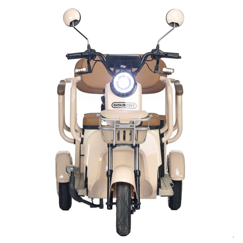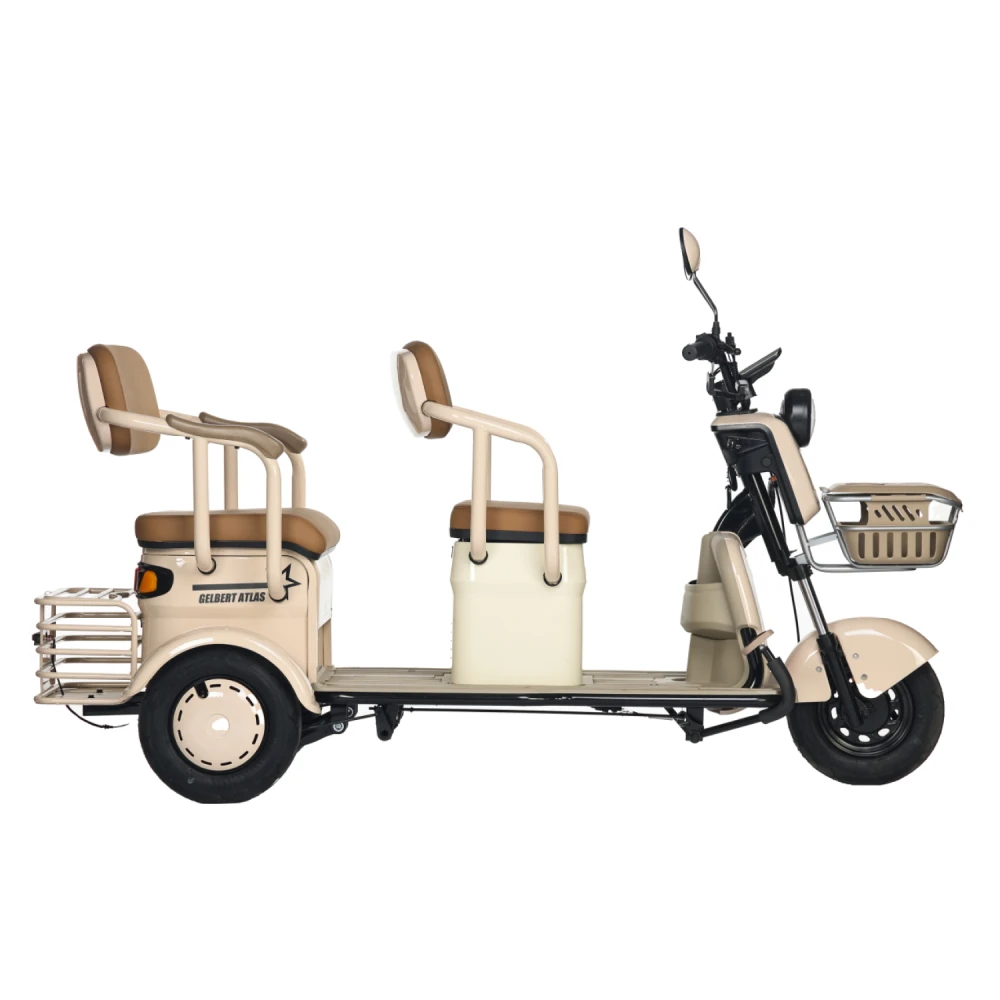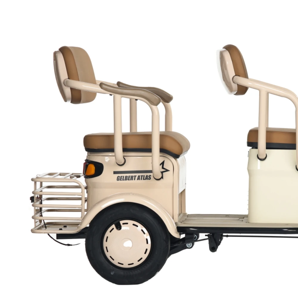 Электротрицикл Rutrike Gelbert Atlas 48V/60V 600Вт – это современное транспортное средство, созданное для комфортного передвижения в условиях города и за его пределами. Модель выделяется элегантным бежевым оттенком, придающим ей утончённый и стильный вид, а также продуманной компоновкой, которая обеспечивает отличную устойчивость и удобство управления.Благодаря двигателю мощностью 600 W, работающему на диапазоне напряжения 48/60 V, Atlas уверенно стартует и поддерживает стабильную динамику, достигая максимальной скорости до 25 км/ч – оптимального показателя для спокойного городского движения. Компактные 8‐дюймовые колеса способствуют надежному сцеплению с дорогой, что особенно важно при маневрировании в условиях ограниченного пространства.С весом 95 кг и способностью выдерживать нагрузку до 190 кг, этот электрический трицикл демонстрирует баланс между легкостью и прочностью конструкции. Его габаритные размеры (148×81×65 см) позволяют устройству занимать минимальное пространство при хранении и транспортировке, оставаясь при этом функциональным и устойчивым на дороге.Электротрицикл Atlas от Gelbert спроектирован с учетом современных требований безопасности и удобства эксплуатации – надежная система торможения в сочетании с продуманной эргономикой делает каждую поездку не только комфортной, но и безопасной. Эта модель станет отличным выбором для тех, кто ищет практичное и стильное решение для повседневного передвижения, совмещающее высокую технологичность с оригинальным дизайном.