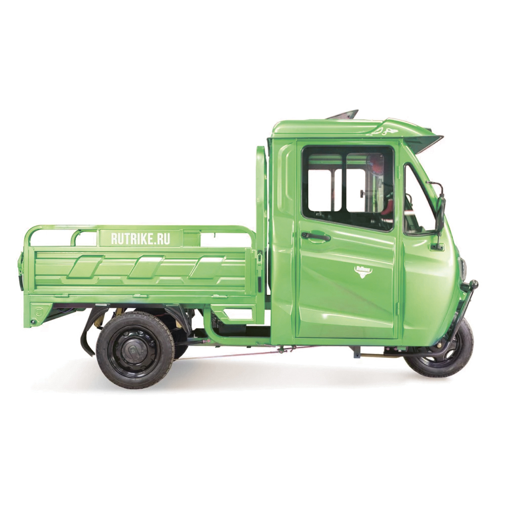 Модель оснащена современным тяговым бесщеточным новым мощным мотором с параметрами 1000 Вт. Такая начинка улучшает скоростные характеристики техники. Электротрицикл быстро развивает скорость до 25 км/час. Откидные борта кузова позволяют легко выгружать крупногабаритный груз. Герметично закрытая кабина допускает езду при любых погодных условиях, открывается с двух сторон.