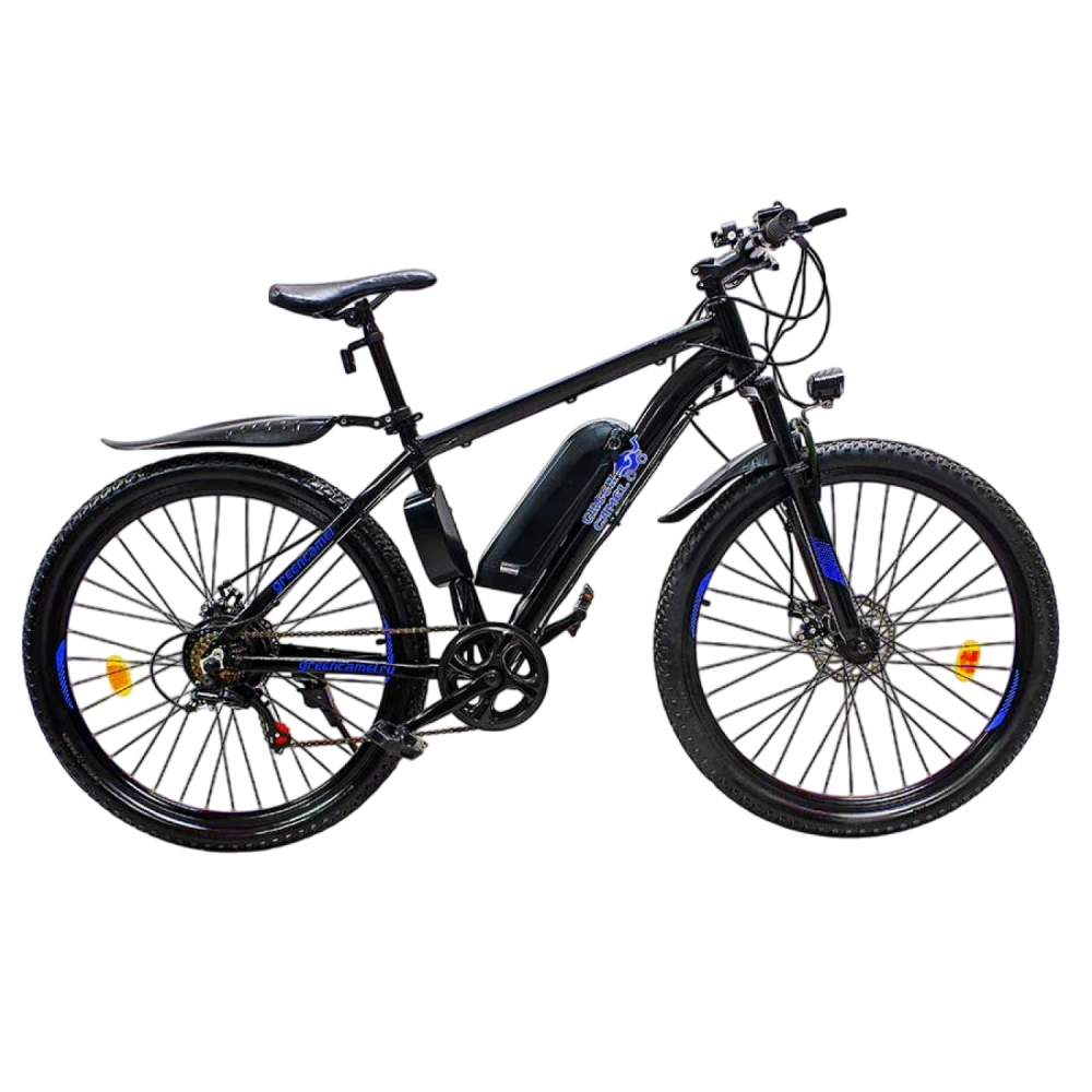 ЭЛЕКТРОВЕЛОСИПЕД GREENCAMEL КЛАСС A (R27,5 350W 36V 10AH) черно-синий напоминает нечто современное и космическое. Визуальное знакомство с техникой заставляет замереть от увиденного. И не зря. От электровелосипеда исходит сила и мощь. Технические параметры совершенствованы по максимуму. Аналогичное можно сказать про комплектацию.