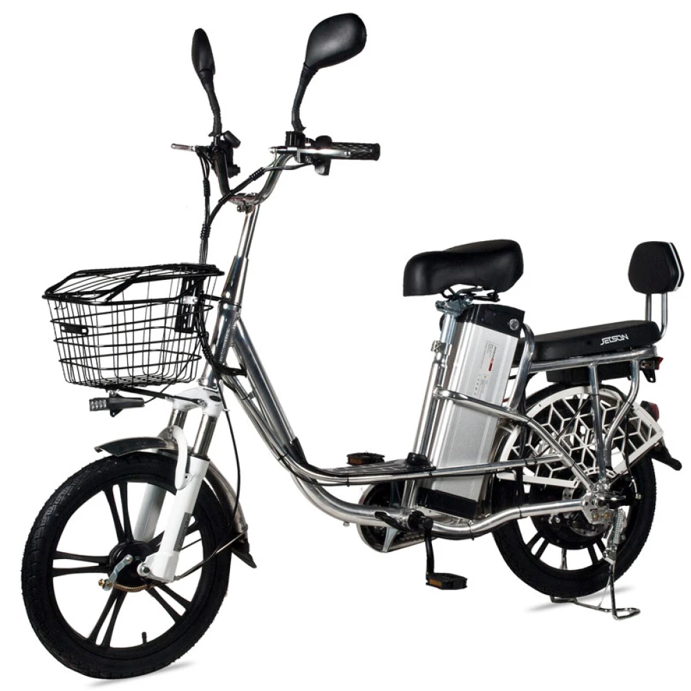 Электровелосипед Jetson Pro Max (60V13Ah) (гидравлика)– удобная техника с отличными параметрами комфорта понравилась семейным парам и лицам, проживающим в дачной местности. Модель весом 28 кг и грузоподъемностью 200 кг рассчитана на водителя и пассажира. Технические параметры лучшие в своей линейке. При мощности движка 500 Вт велогибрид способен разогнаться до 50 км/час. Емкости батареи хватает на городской вариант техники рассчитанный на водителя и пассажира. Удобный для 100 км пути на одной подзарядке. Приобрести электровелосипед для ежедневной езды предлагает наш интернет-магазин.