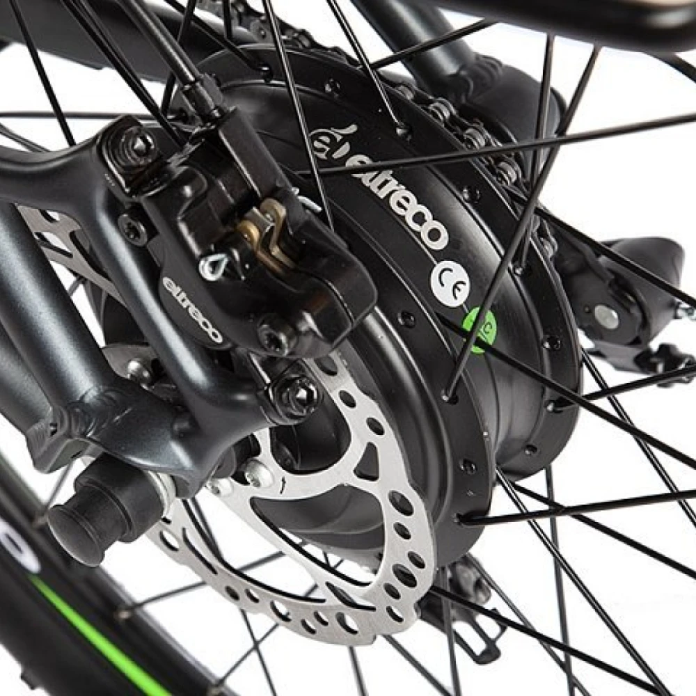 Двигатель представляет собой электромотор с мощностью 500 W, позволяющий разгоняться до 38 км/ч. Мотор-редуктор дает возможность легко прокручивать педали. Электровелосипед питается за счет 10 Ah Li-ion батареи, с напряжением 36 В . Аккумулятор быстросъемный, при необходимости быстро снимается с помощью ключа. Максимальный пробег за один заряд составляет 50 км.